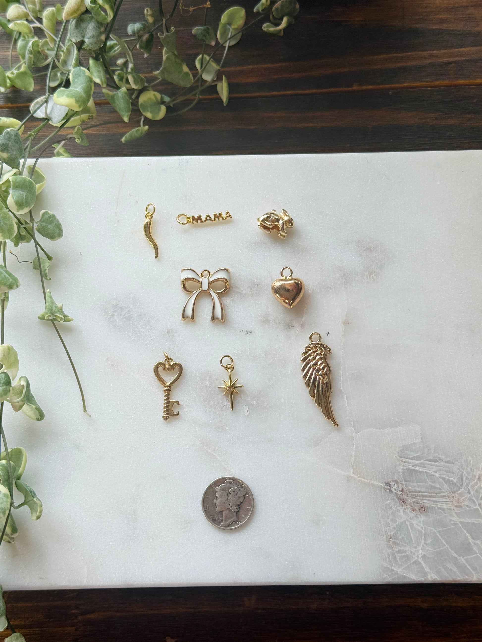 This collection features a variety of charms crafted from a combination of gold-filled, gold-plated, and stainless steel materials.