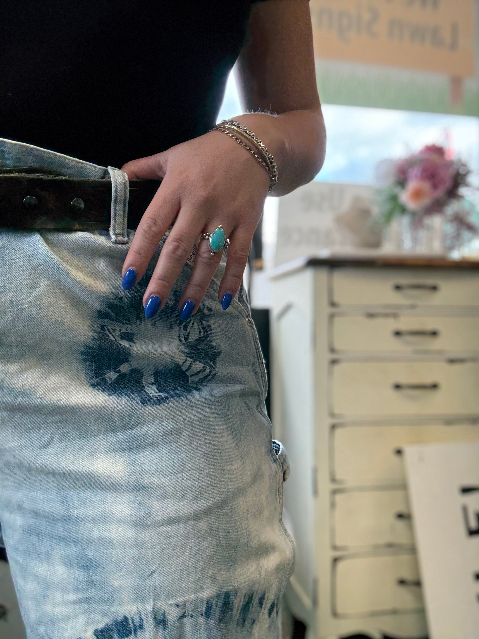A classic beauty featuring natural American turquoise set in sterling silver. The vivid sky-blue hue and organic matrix reflect the spirit of the Southwest.