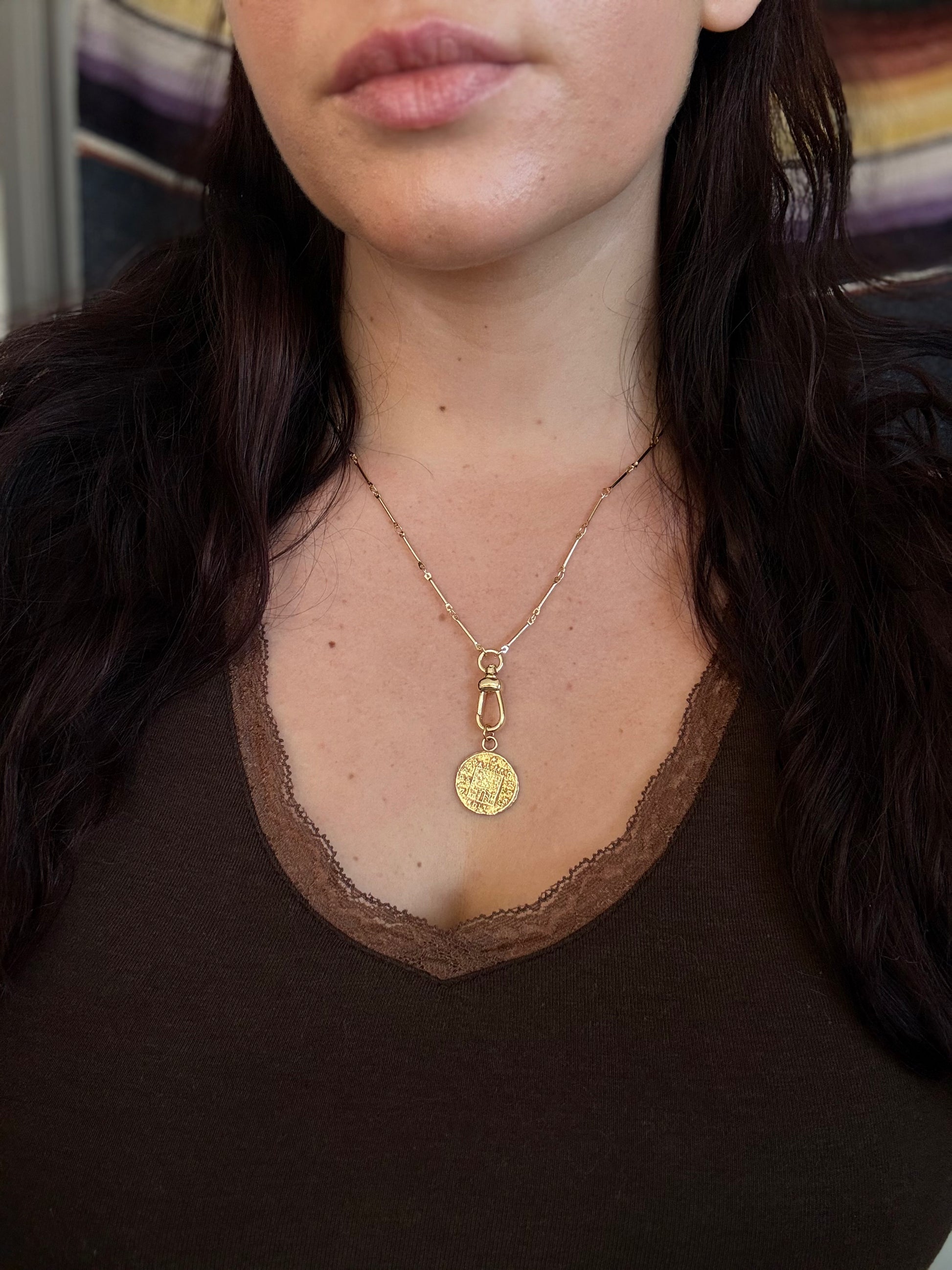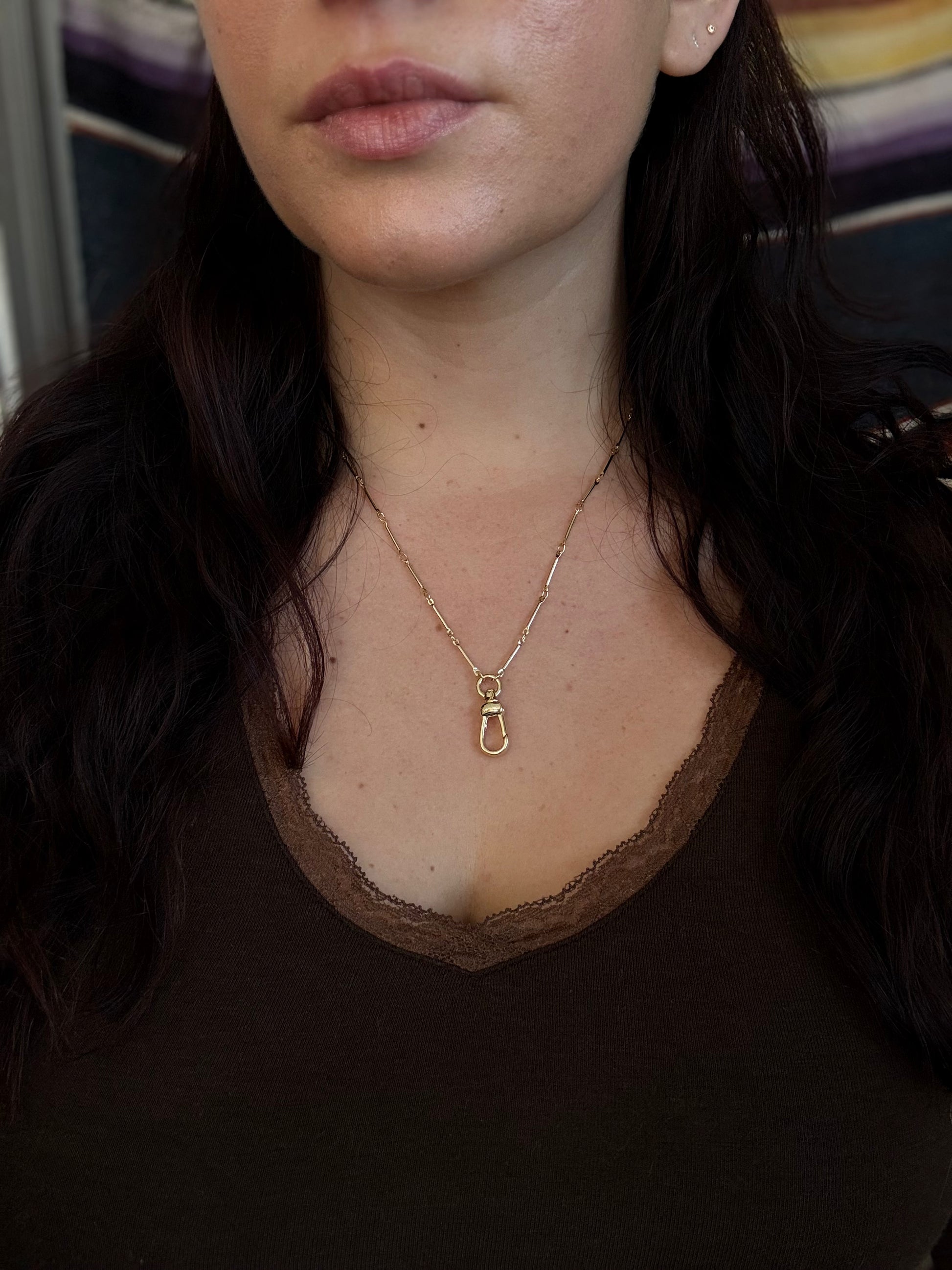 Drawing inspiration from antique pocket watch chains, this bar and link necklace is finished with a dog clip swivel clasp that allows for easy charm attachment. The swivel design lets charms move naturally, creating a balanced, effortless look.