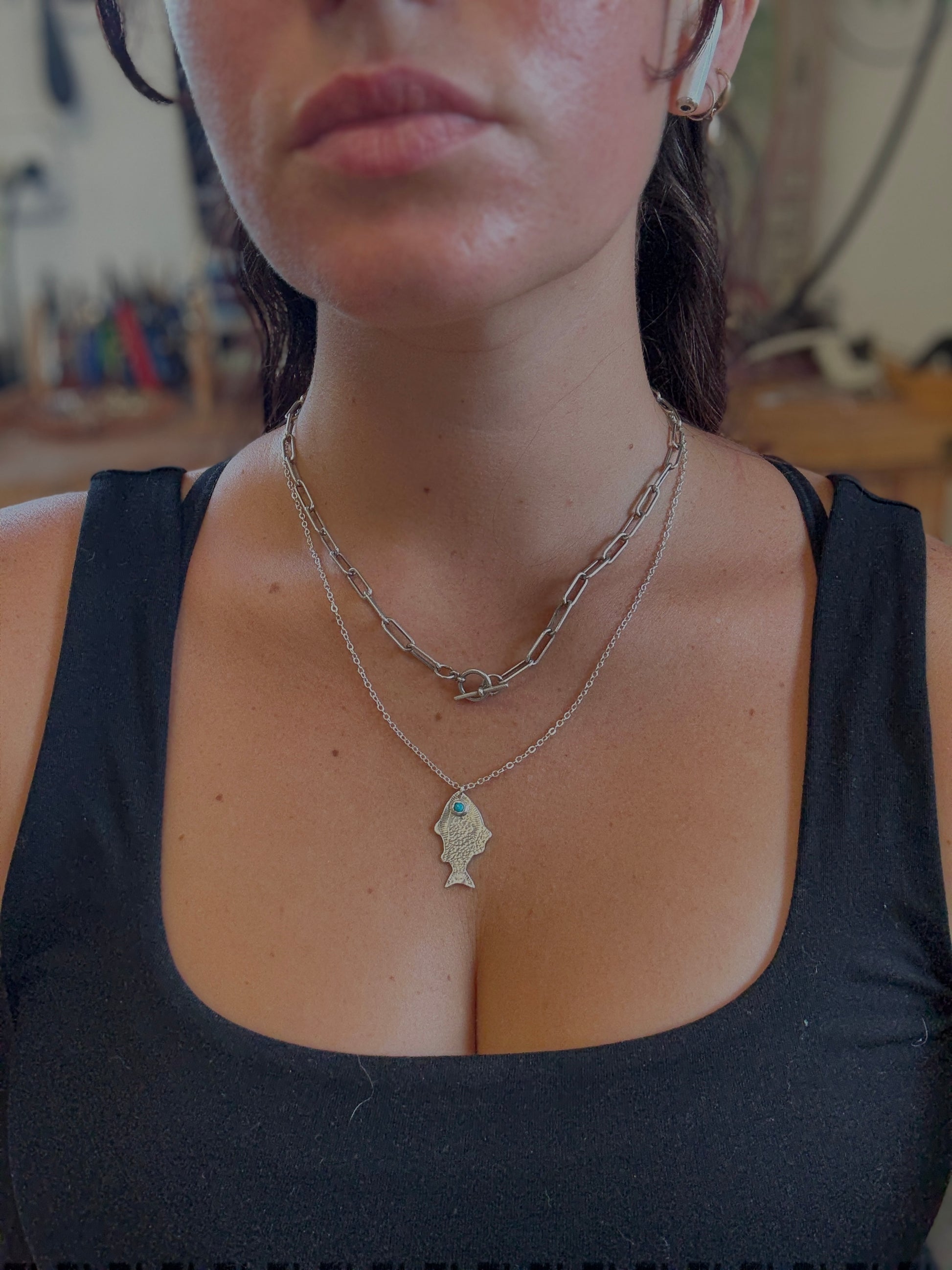 - Paper clip chain featuring a front toggle chain. Toggle can be shown front or hidden for different looks. 18in