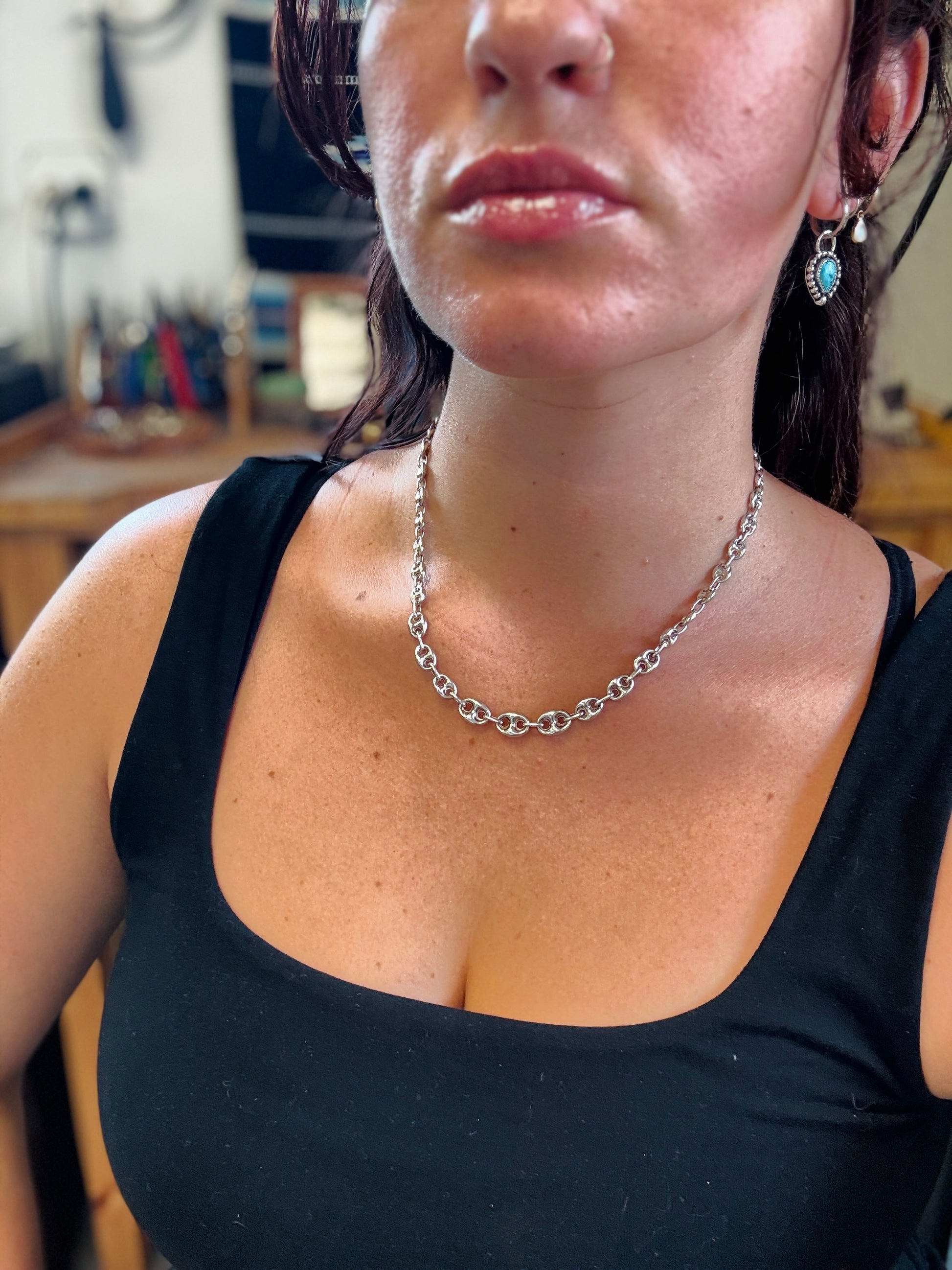 - Vintage Puffed Anchor Chain, graduated links, 18in