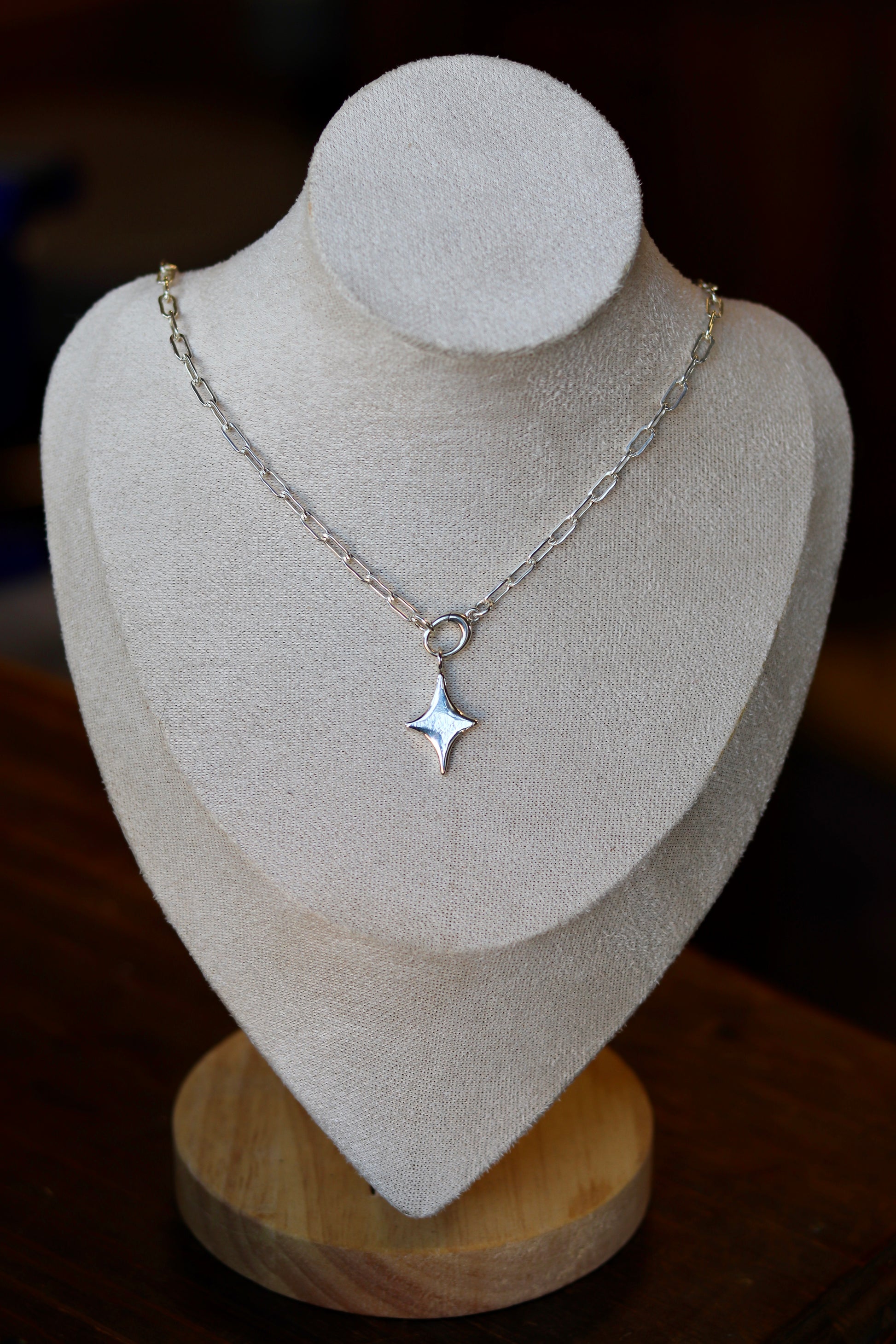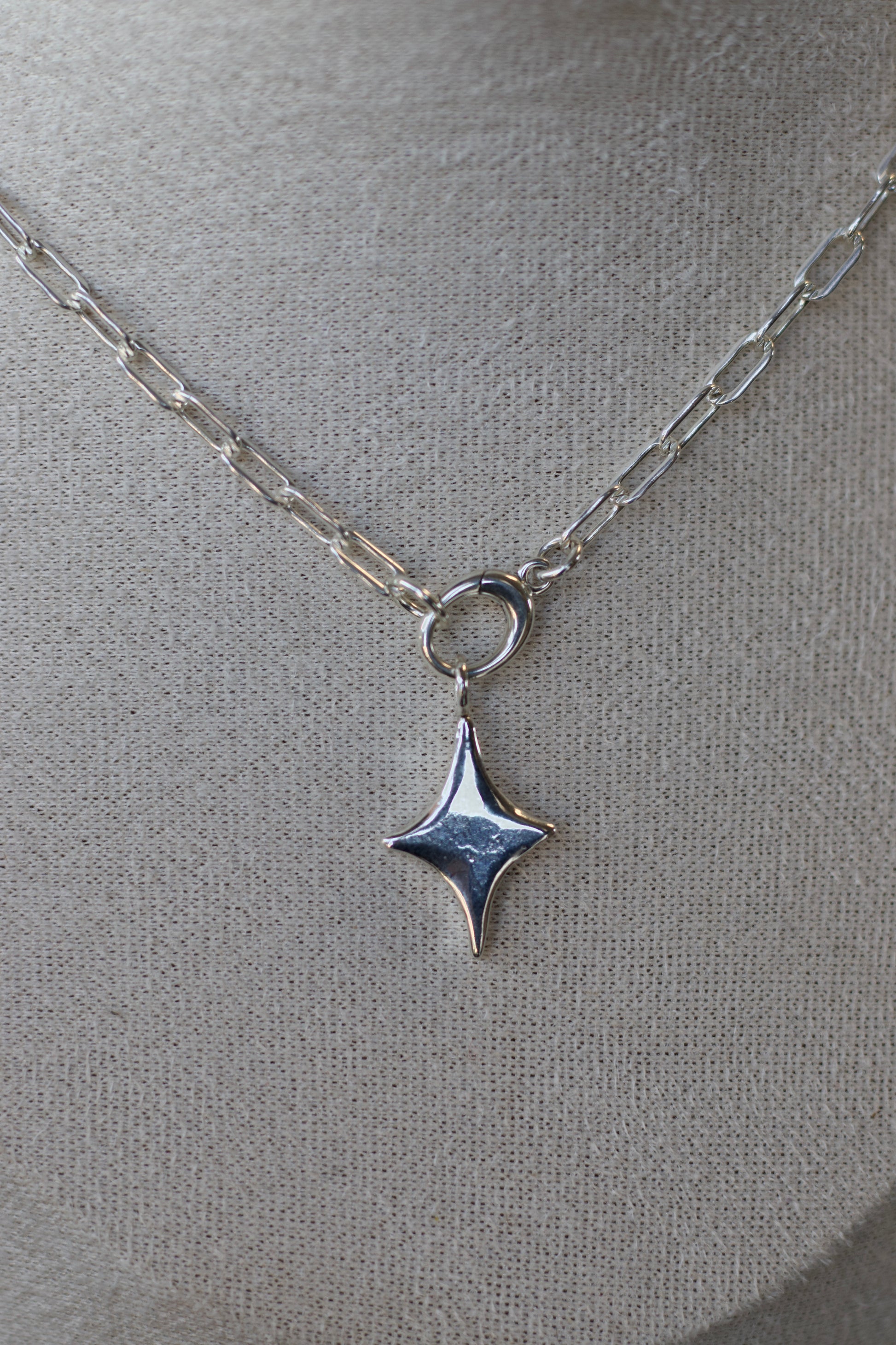 This North Star pendant was hand carved in wax and sandcast in sterling silver. A symbol long associated with guidance and direction, it’s offered on either a charm keeper chain or a 20-inch beaded chain, designed to be worn every day, like a personal compass. A great piece to layer with other necklaces or add to your own chain!