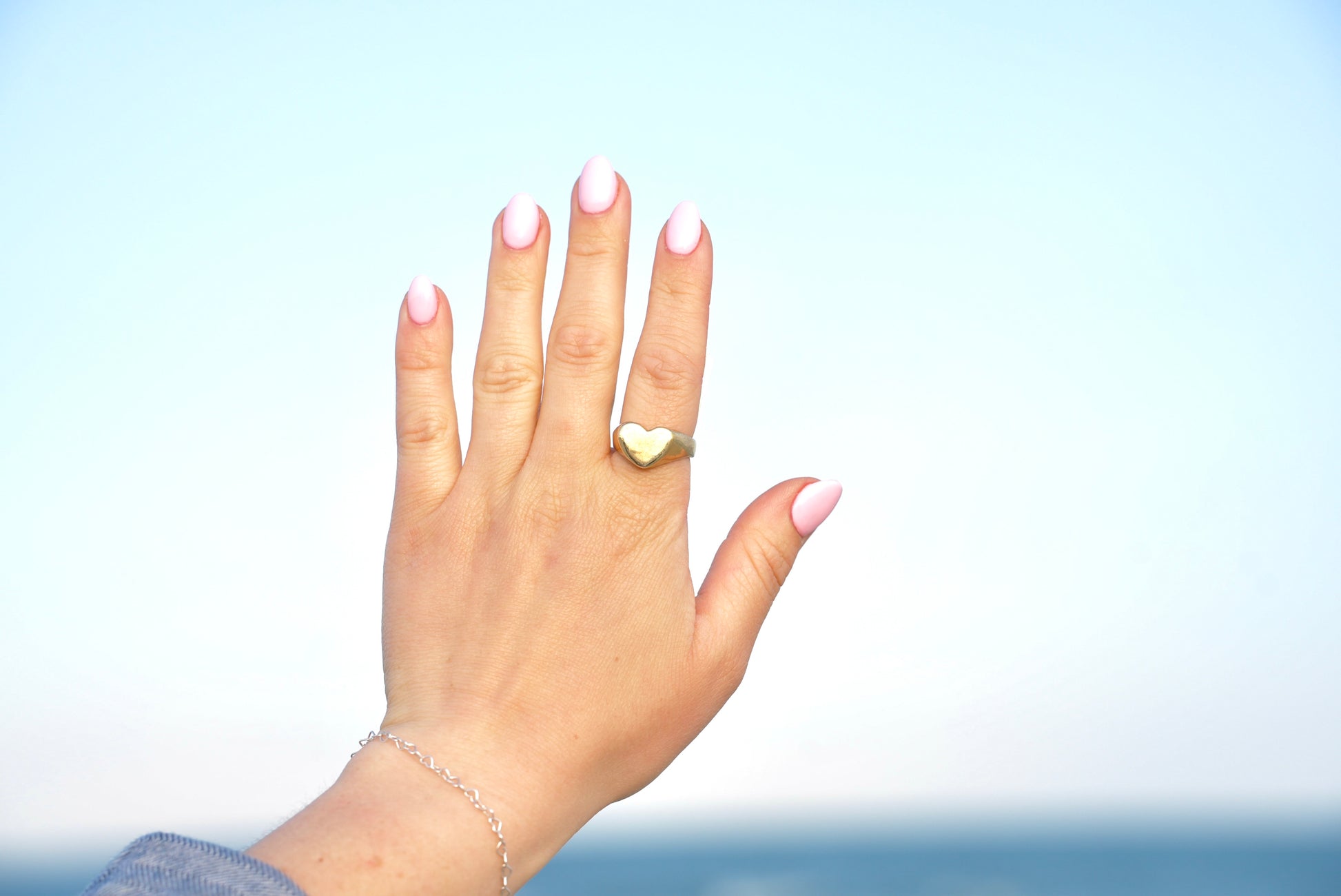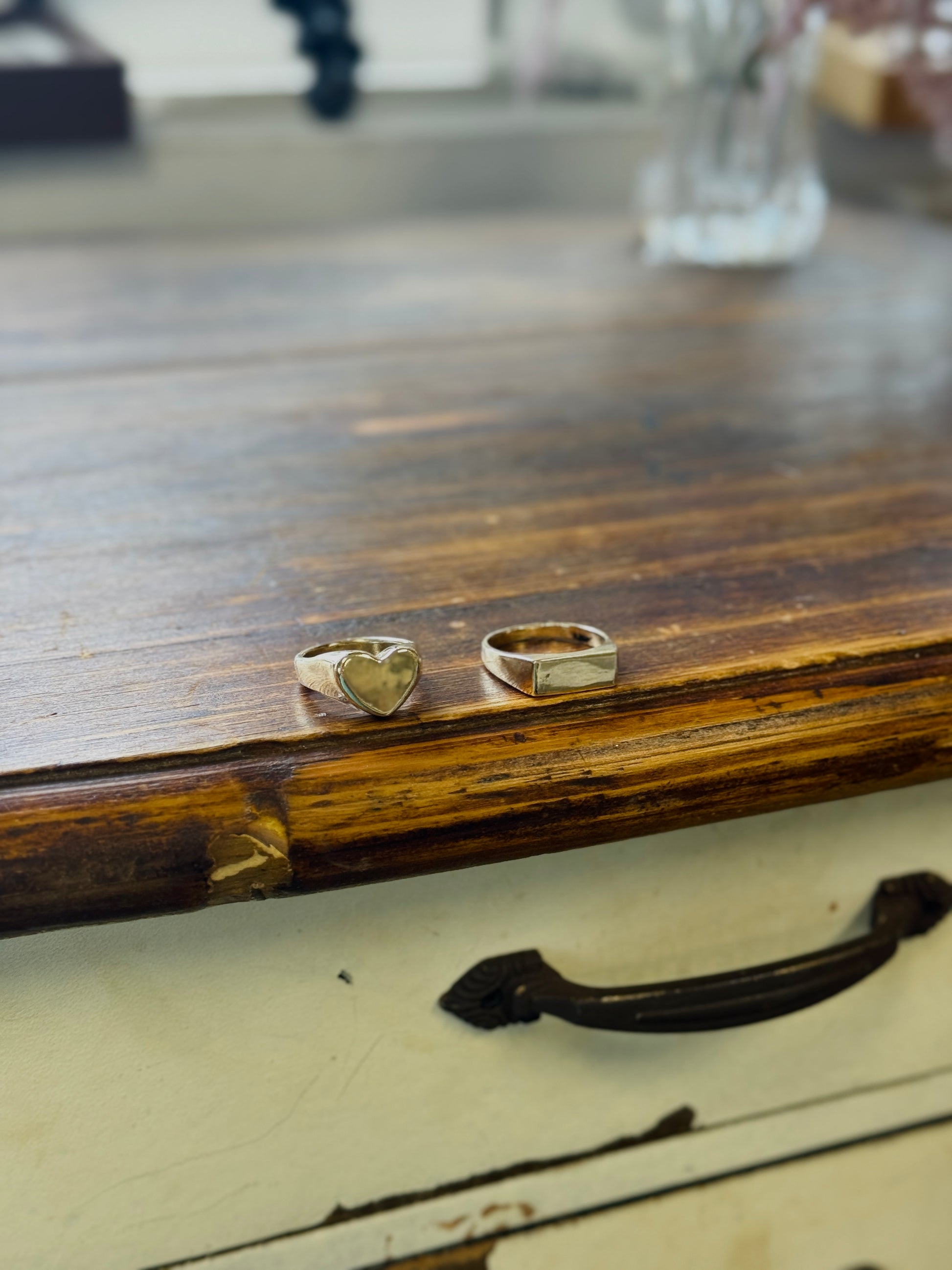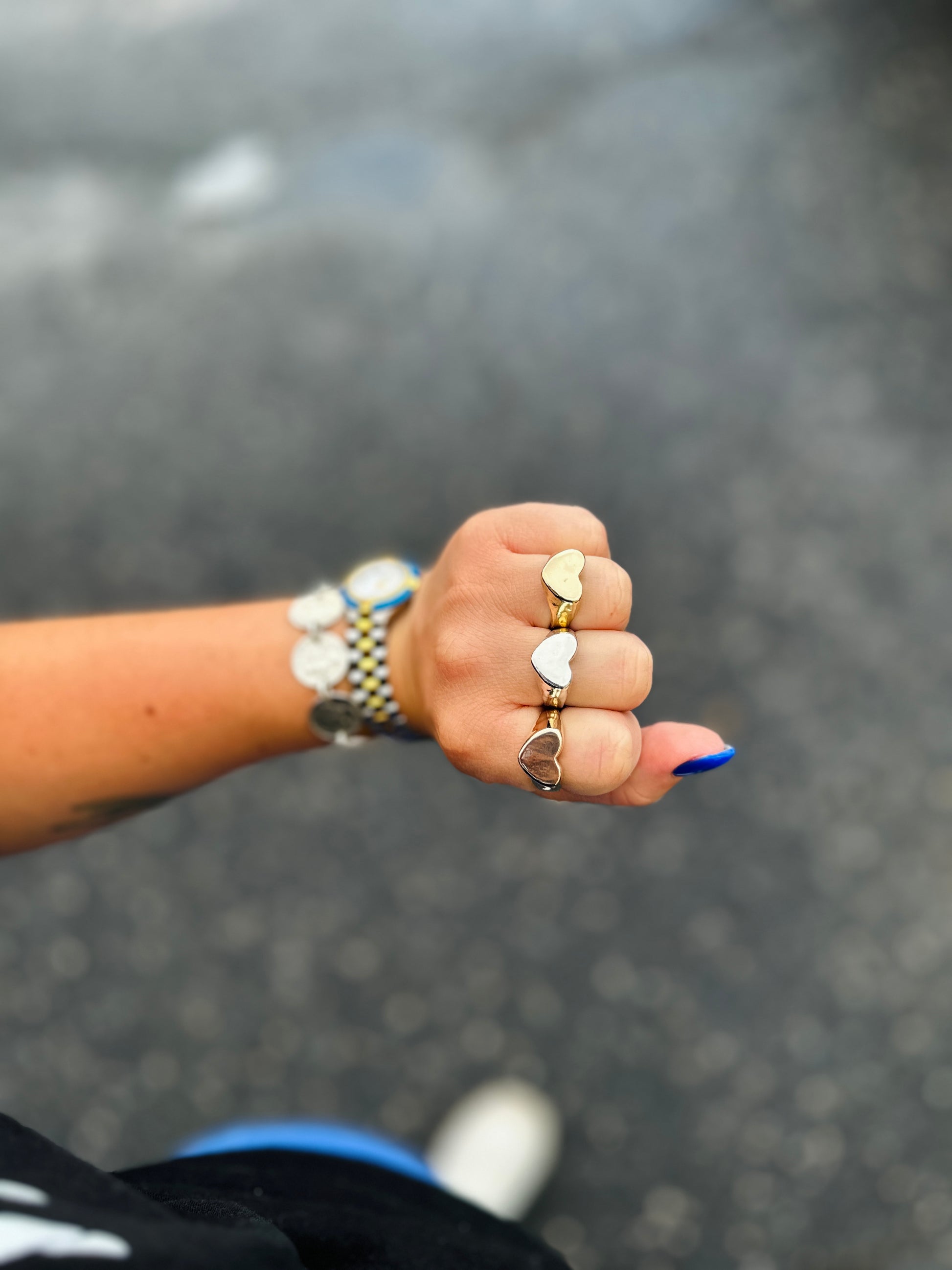 This ring design was hand carved & polished by me out of wax and casted by NYC artisans to transform wax to metal! It is available in Sterling Silver & Brass! I hope you love your sweetheart ring.
