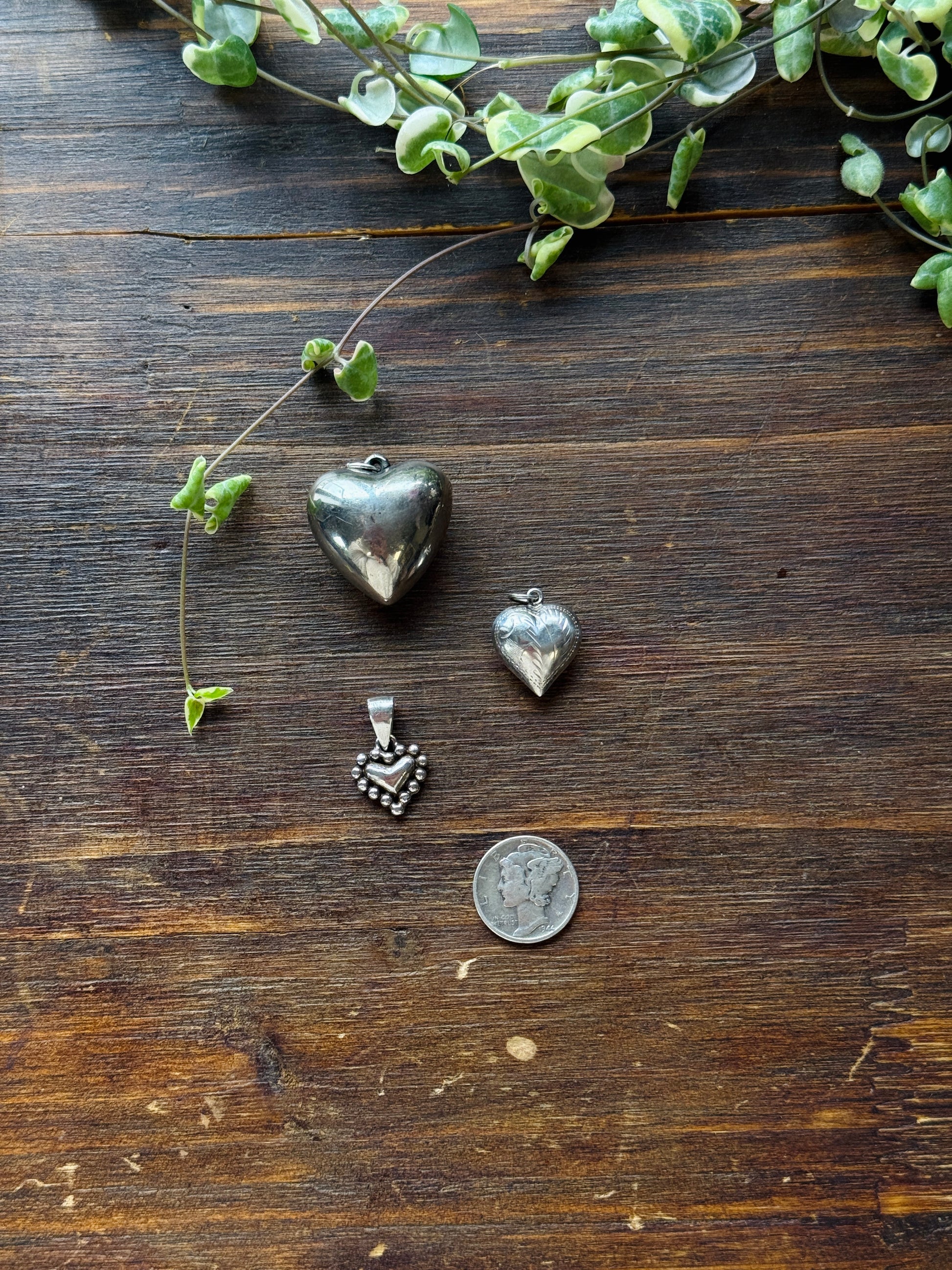 - Vintage Sterling Silver 1960s Etched Puffy Hollow Heart